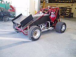 Sprint car V8 headers and Mufflers with jet hot coating.